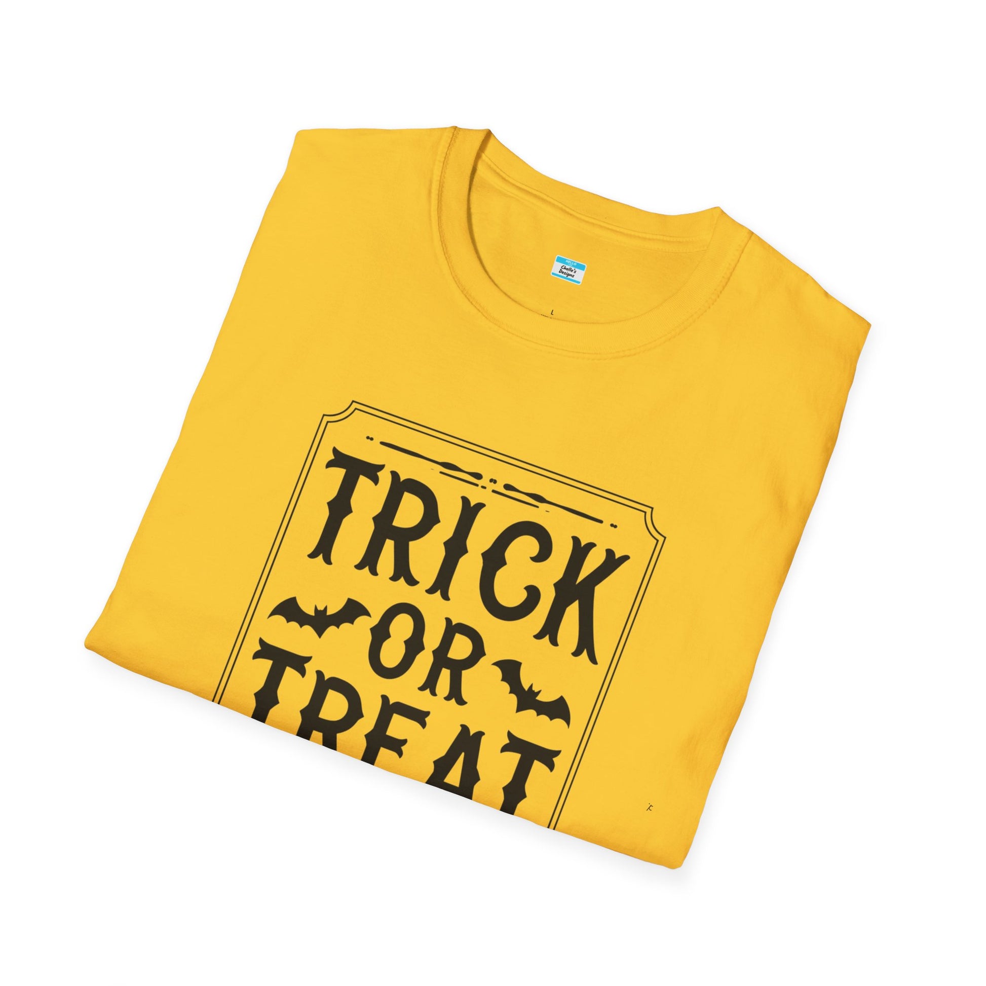 Get into the spooky spirit with this hilarious “Trick or Treat, Smell My Feet” Halloween T-shirt! Featuring a bold black design on a vibrant yellow tee, this graphic shirt is perfect for haunted houses, costume parties, or passing out candy with style. Bats, creepy font, and a classic Halloween rhyme make this a fan-favorite for kids and adults alike.
