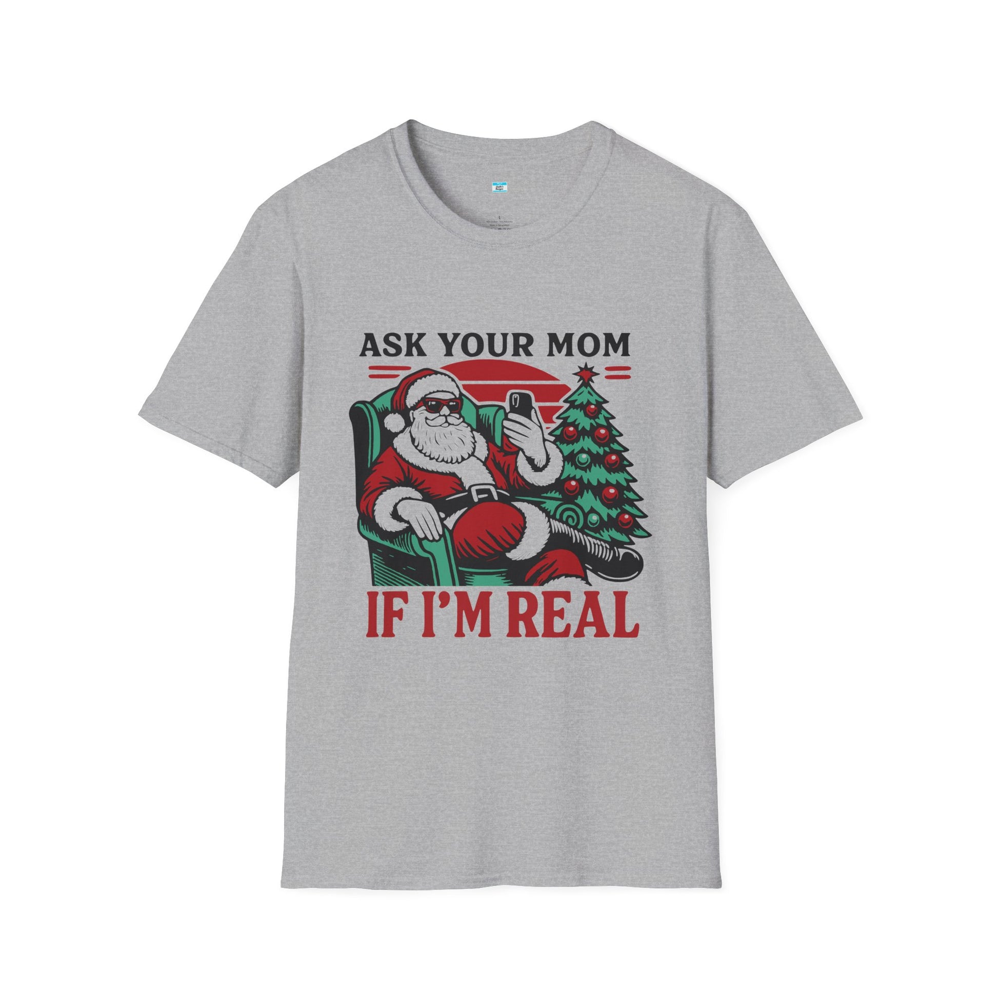Get festive and funny this holiday season with this “Ask Your Mom If I’m Real” Santa Christmas Shirt.